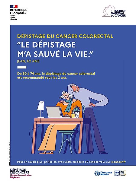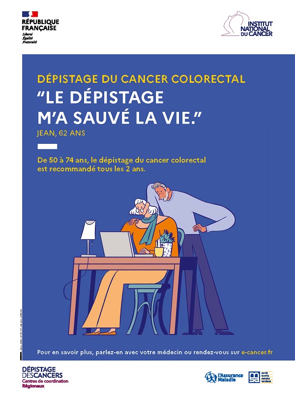 Dépister ce cancer est simple grâce au test immunologique. Il consiste a repérer d’éventuelles traces de sang (non visibles à l’oeil nu) dans les selles. Ce test rapide et efficace, est à faire chez soi. Il s’adresse aux femmes et aux hommes, de 50 à 74 ans, invités tous les 2 ans par courrier au programme national de dépistage du cancer colorectal ne présentant ni symptômes, ni antécédents personnels ou familiaux de polype, de cancer ou de maladie touchant le côlon ou le rectum, ni facteurs de risques particuliers.